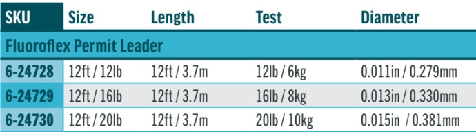 RIO's 12ft Fluoroflex Permit Leaders are made of 100% fluorocarbon for maximum stealth and abrasion resistance when fishing clear flats for cruising or tailing permit. Fluorocarbon leaders also sink faster than their nylon equivalents, which is an advantage when targeting fish on deeper flats. With a long, medium-stiff butt section, this leader is tuned to deliver typical crab and shrimp patterns in the wind. Available in a range of break strengths for every scenario.