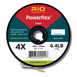 The RIO Powerflex Tippet features superb knot strength, stretch and suppleness to make this the finest nylon tippet for any fly fishing setup. Made from co-polymer PTFE coating, this tippet's light grey color enhances its camouflage ability on the water. Available from 8X to 60lb, the Powerflex is ideal for all species.