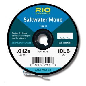 RIO’S NEW SALTWATER MONO is the go-to choice for anglers looking to tie their own leaders for tarpon, bonefish, permit, and other saltwater species. The material has a great strength-to-diameter ratio, ample abrasionresistance, lacks memory and provides incredible knot-ability. Available in size 8lb to 60lb, there is an appropriate diameter for any leader’s butt section, plus a great range of sizes to taper down with.